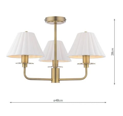 Laura Ashley Durford 3 Light Semi-Flush Matt Antique Brass and White Ceramic