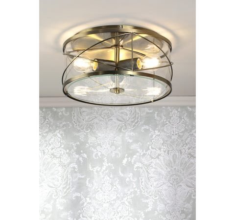 Laura Ashley Beckworth 3 Light Flush Antique Brass and Glass