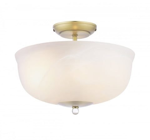 Laura Ashley Cossington 2 Light Semi-Flush Matt Antique Brass and White Marble Effect Glass