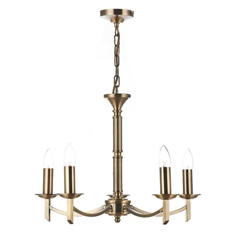 The AMBASSADOR 5lt Pendant is finished in antique brass and has a feature ribbed central column.The fitting comes complete with 2 sets of candle sleeves to allow use with and without shades.Supplied with 50cm of cable and chain and with a dual mount option to make this fitting Semi Flush, this pendant is fully height adjustable at point of installation.Matching products are available; type ‘AMBASSADOR’ in the search box at the top of the screen to view the whole range.