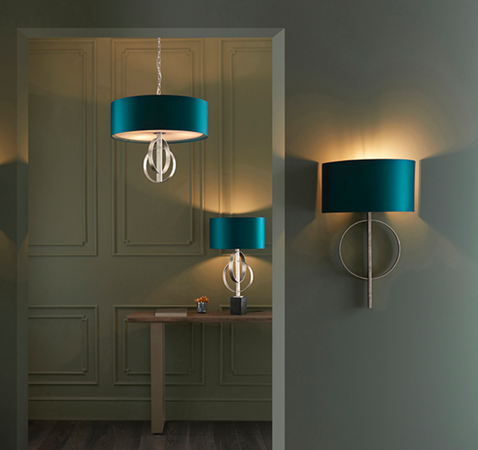 Finish: Silver Leaf, Teal Satin Shade