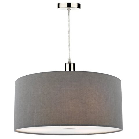 RONDA – a beautiful range of drum shade easy fit pendants in smooth faux silk in a classic palette of colours, porcelain white, slate grey and taupe.