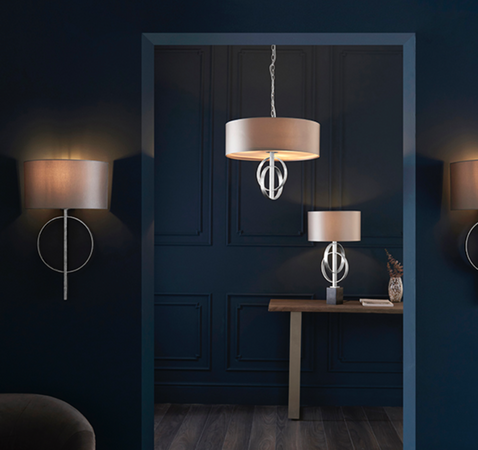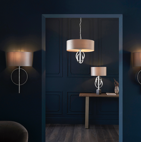 Finish: Silver Leaf, Mink Satin Shade, White Diffuser