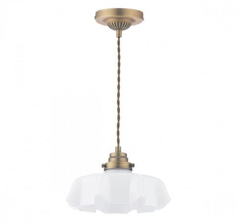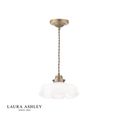 Laura Ashley Banham Pendant Matt Antique Brass and White Glass