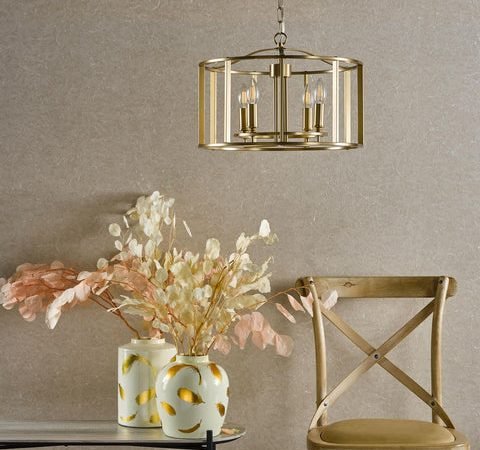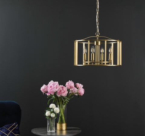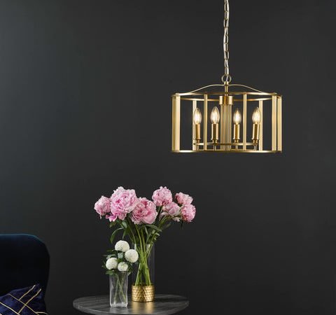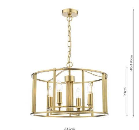 The Myka 4 Light Pendant Brushed Bronze, is a grand fitting encased in a decorative cage with a curved top. This fitting looks wonderful with our decorative filament candle lamps and is height adjustable on installation.The Myka pendant light takes 4 E14 (SES) bulbs (not supplied), We recommend using LED filament lamps from our range of LED bulbsHeight is adjustable at the point of installation (40-130cm).Bulb not included.
