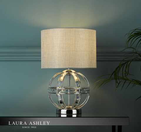 Laura Ashley Aidan Glass & Polished Chrome Globe Table Lamp with Shade