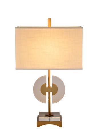 A true piece of art, your eye is instantly drawn to this unique design. Base and stem are circular cut crystal with antique brass detail. Shade is rectangular and off white in colour.