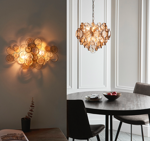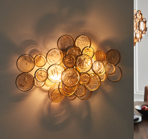 Aurelia embodies grace and grandness with its unique structure and amber glass medallions, you are guaranteed an eyeful at every angle.