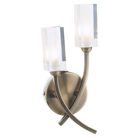 The MORGAN 2lt Wall Light has clear glass shades with frosted inner detail and an antique brass frame.Matching products are available; type MORGAN into the search box to view the whole range.